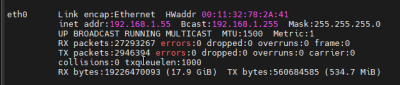 La commande ifconfig permet de vérifier l'interface du réseau, ici c'est eth0 :