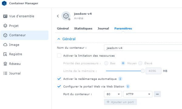 Monter un serveur Jeedom sur NAS Synology (via Docker et container manager)